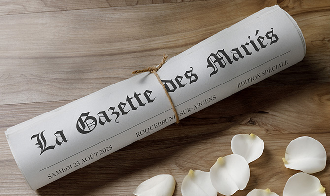 Offrez à vos invités une gazette des mariés pour leur laisser un souvenir personnalisé, ou encore un magazine qui met à l’honneur une personne célébrée.