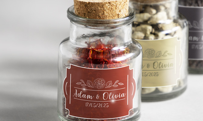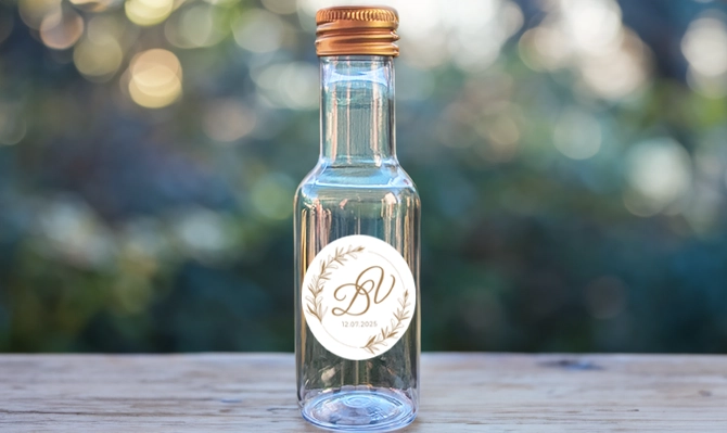 Un cadeau original pour vos invités : une petite bouteille de Limoncello, huile d’olive, sirop ou autres spécialités, personnalisée à votre nom et votre thème.