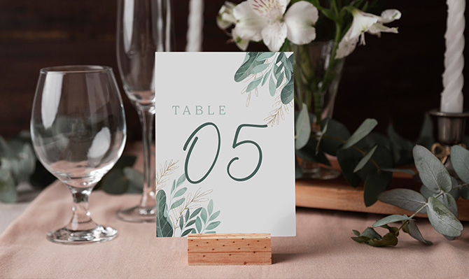 Panneau de bienvenue, plan de table, urne, stickers, affichage…