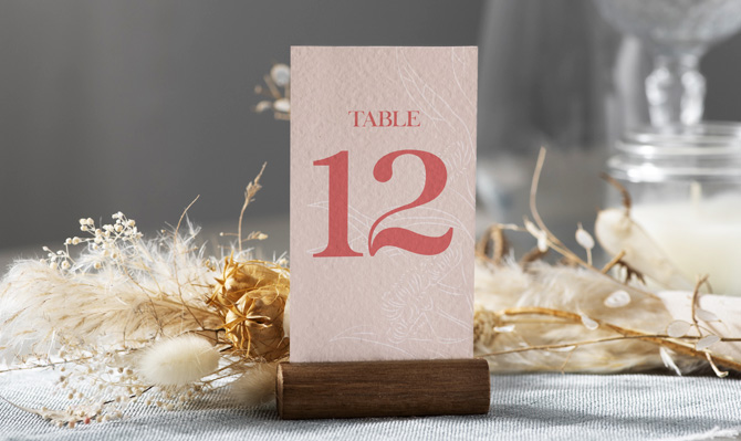 Les noms et numéros de table apportent la touche finale à vos tables, tout en guidant vos invités avec élégance.