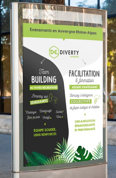 Je suis graphiste depuis 10 ans, dont 7 ans en tant que salariée dans une entreprise d'événementiel qui propose du team building, des salles de séminaire, de la restauration et du loisirs indoor.